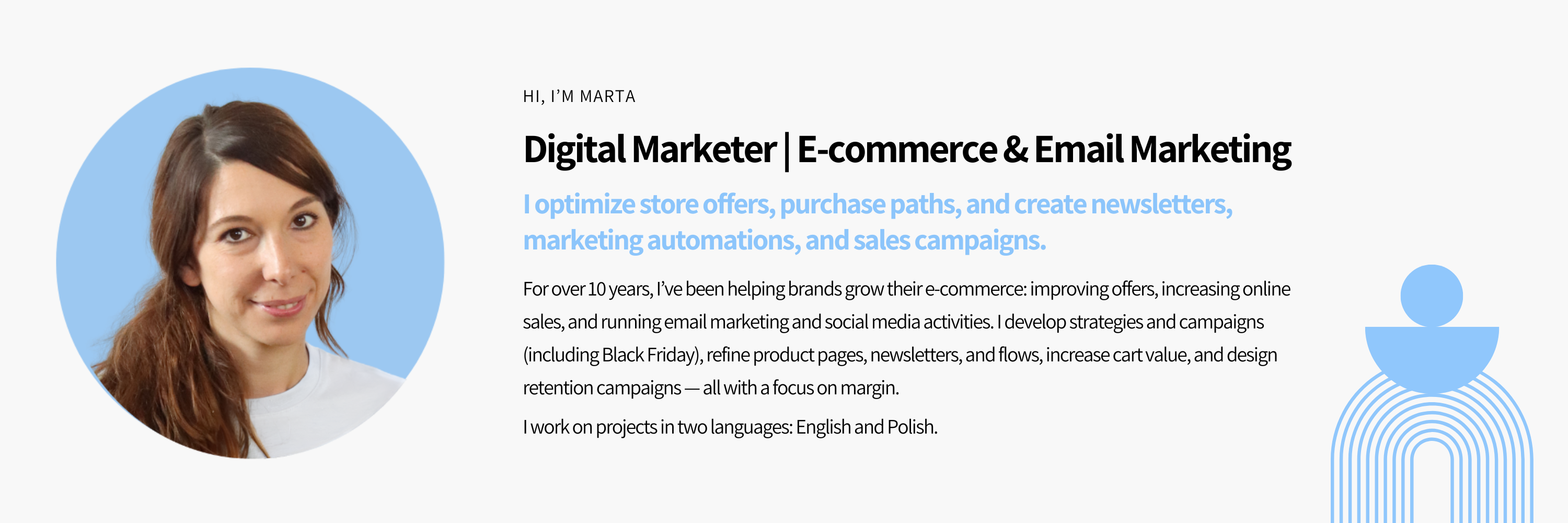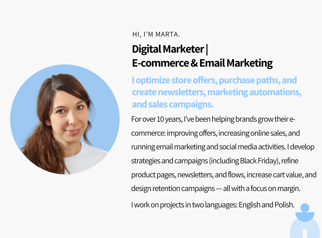 “Marta created a marketing plan and advertising for my online shop resulting in a significant increase in sales and profit. Thank you!”